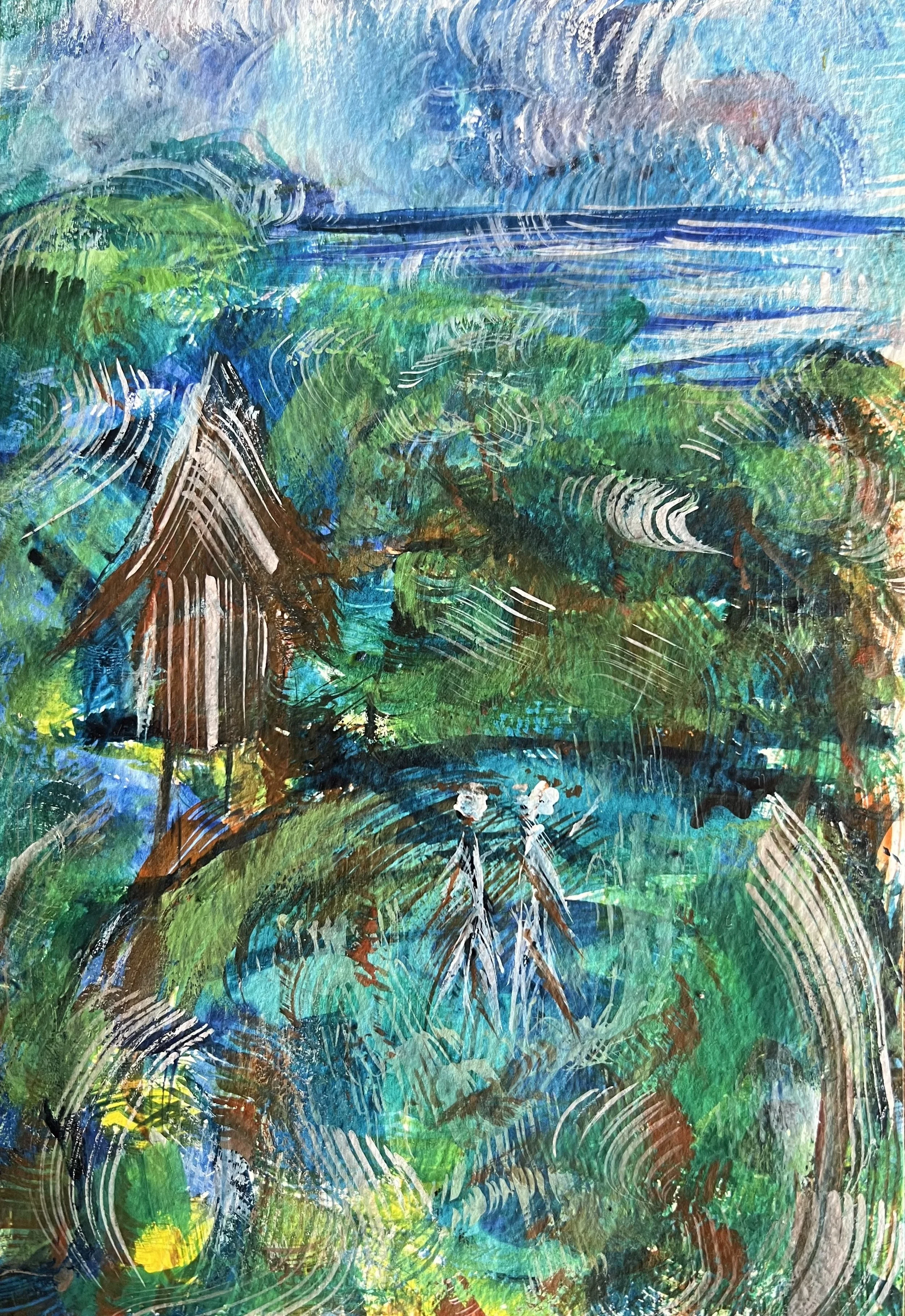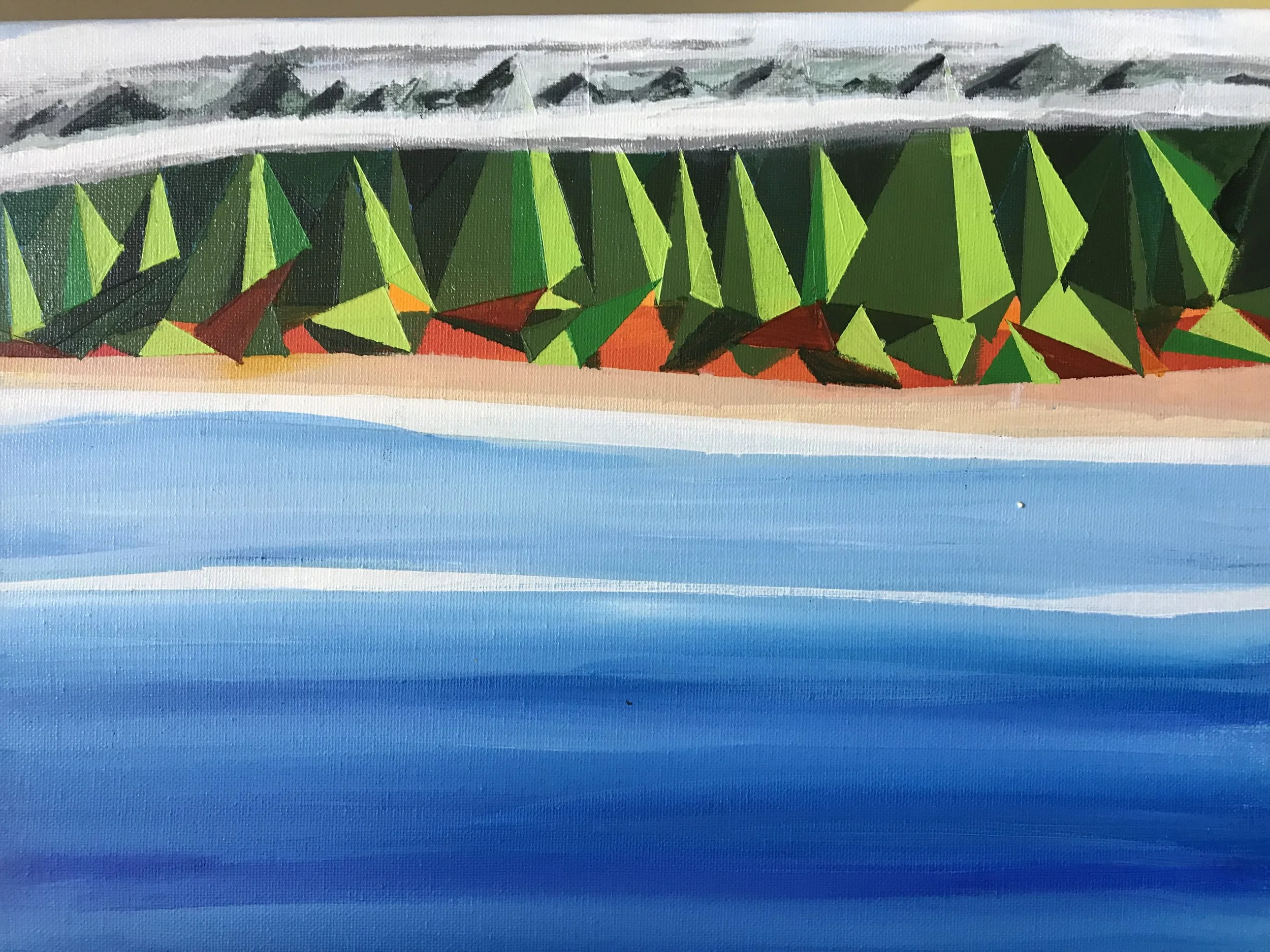 As a longtime resident of Kaua’i, Jason has drawn inspiration from the natural and wild sweeping landscapes the island has to offer. He transforms their presence and stories into abstract interpretations. Learn more about Jason’s work here.